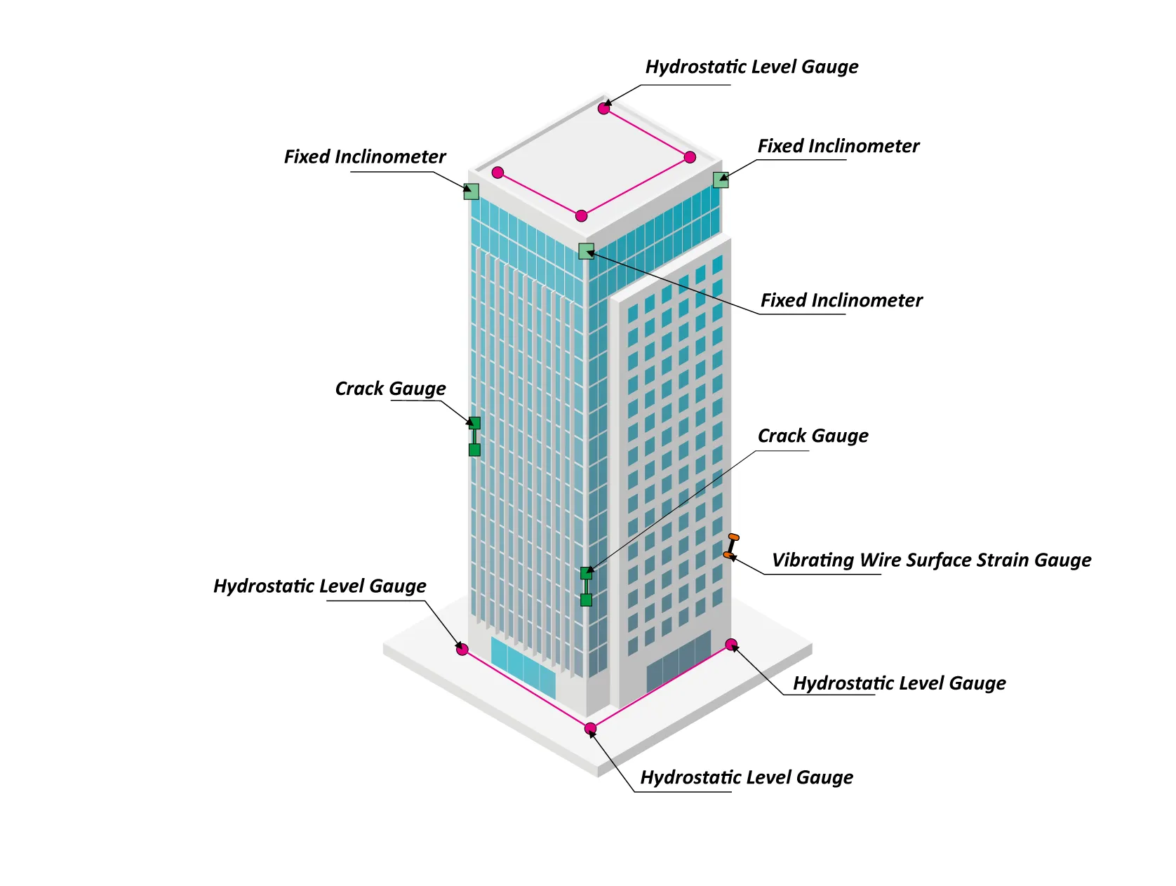 Az olyan technológiák segítségével, mint a dolgok internete, a mobilkommunikáció és a számítási felhő, automatizált biztonsági megfigyelést végez az olyan szerkezetek külső alakváltozásai és háromdimenziós térbeli helyzetváltozásai tekintetében, mint a sokemeletes épületek, nagy fesztávolságú épületek, nagy kockázatú épületek és régi épületek. Rögzíti az épületek egészségi állapotát azok teljes életciklusa során, kontrollálja a kockázatokat, és biztosítja az épületek egészséges kiszolgálását.